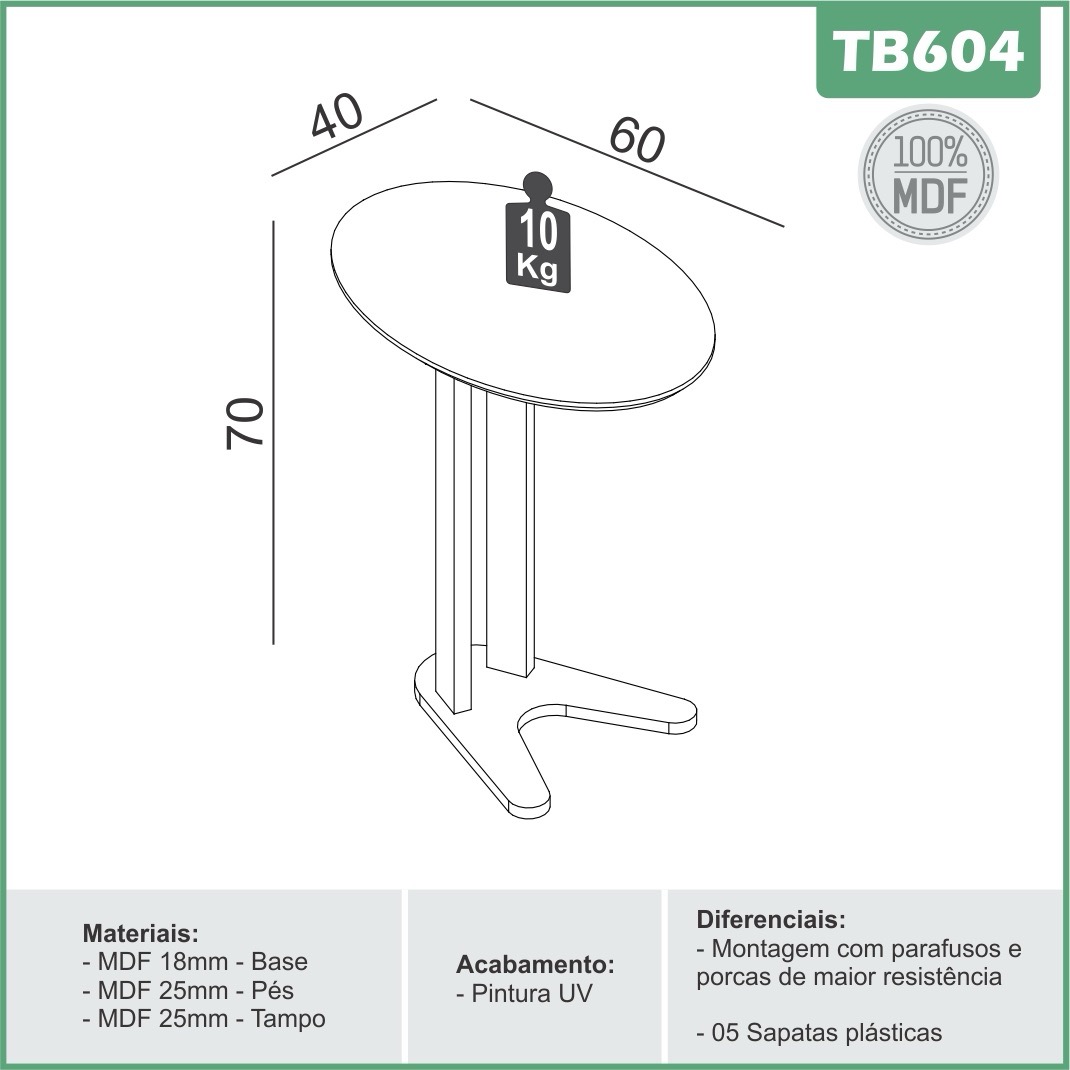 Charmosa e funcional para qualquer ambiente: a Mesa Lateral Oval Dalla Costa TB604 combina design leve com praticidade. Ideal para complementar salas, quartos ou halls com estilo e elegância.